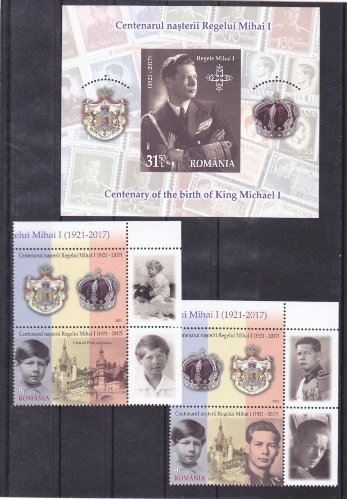 ROMANIA 2021 - CENTENARUL NASTERII REGELUI MIHAI I,COLITA + SERIE CU VINIETA SI TABS, MNH - LP 2343.