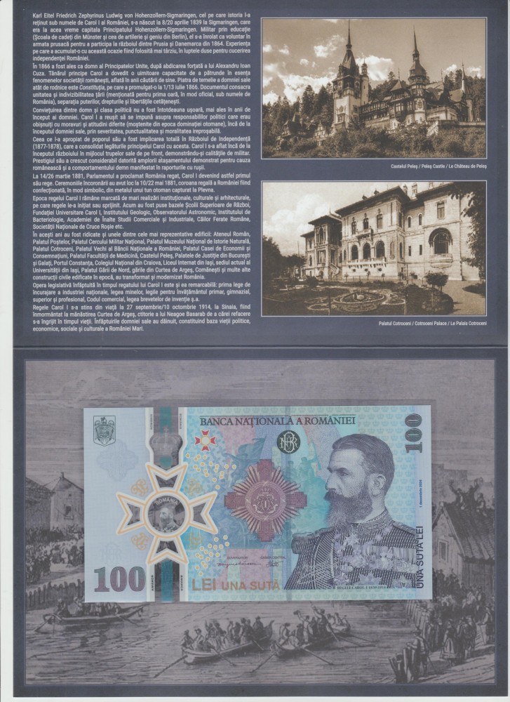 ROMANIA 2024 100 LEI CAROL in folder + Plic BNR UNC