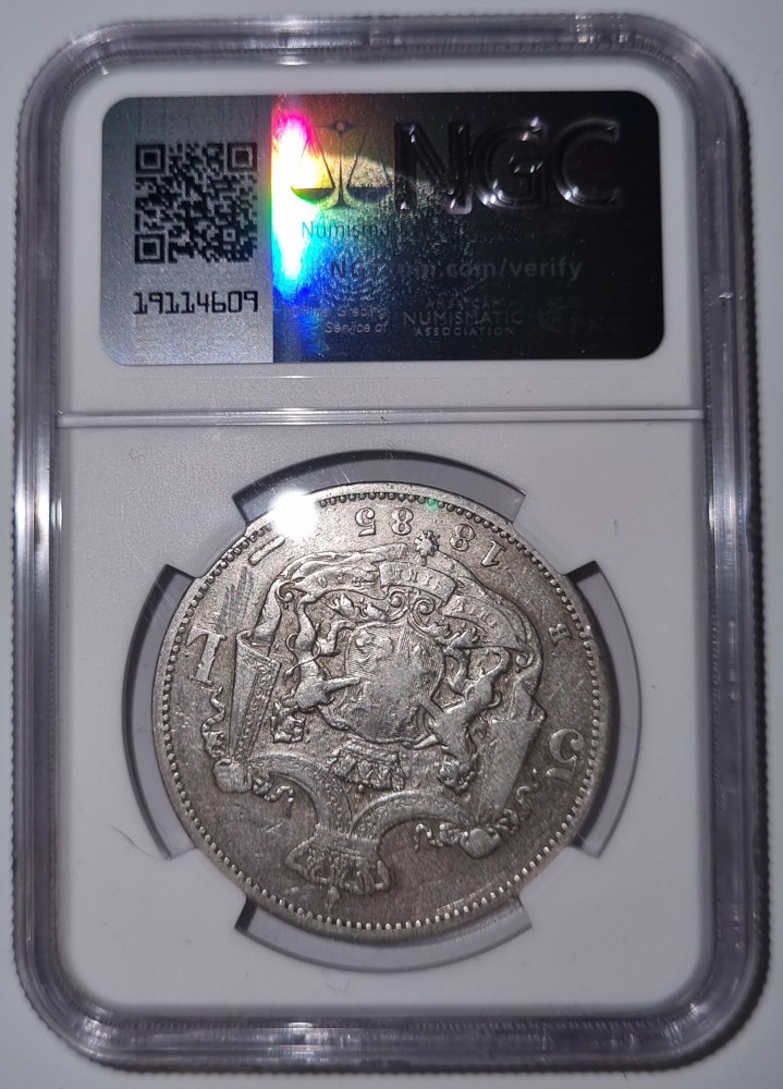 Moneda argint ROMANIA 5 LEI 1885 NGC VF DETAILS