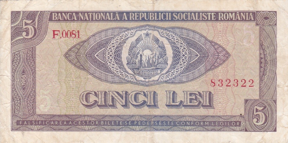 ROMANIA 5 lei 1966 VF!!!