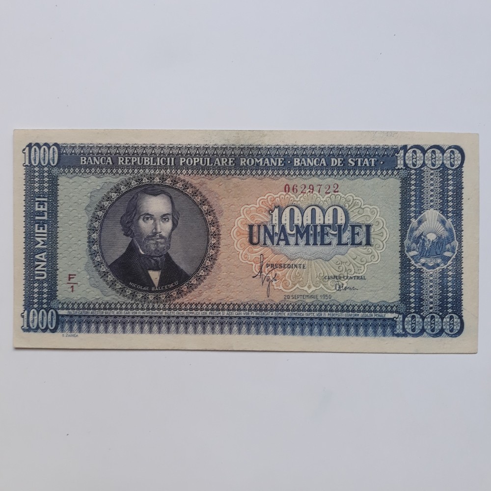 romania bancnota 1000 lei 1950 seria 0629722 - 550 lei