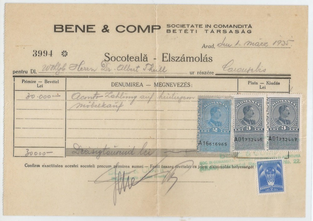 Romania, Bene & Comp, Societate in comandita, Socoteala, Arad, 1935