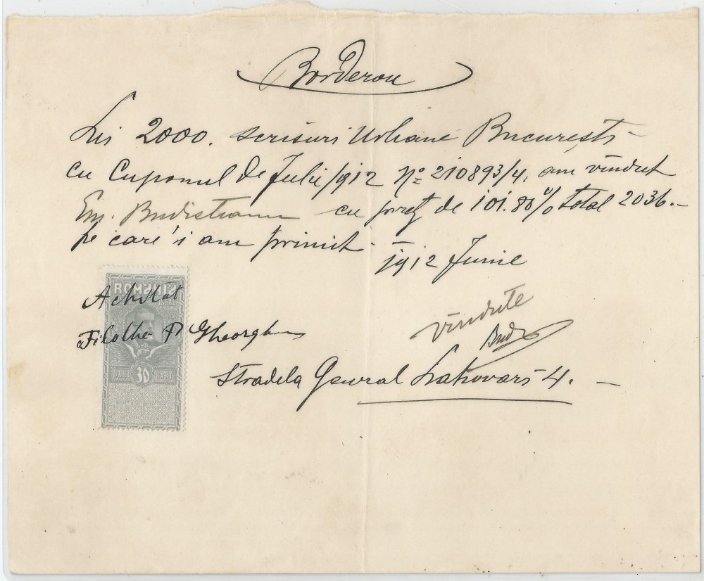 Romania, Borderou, 1912