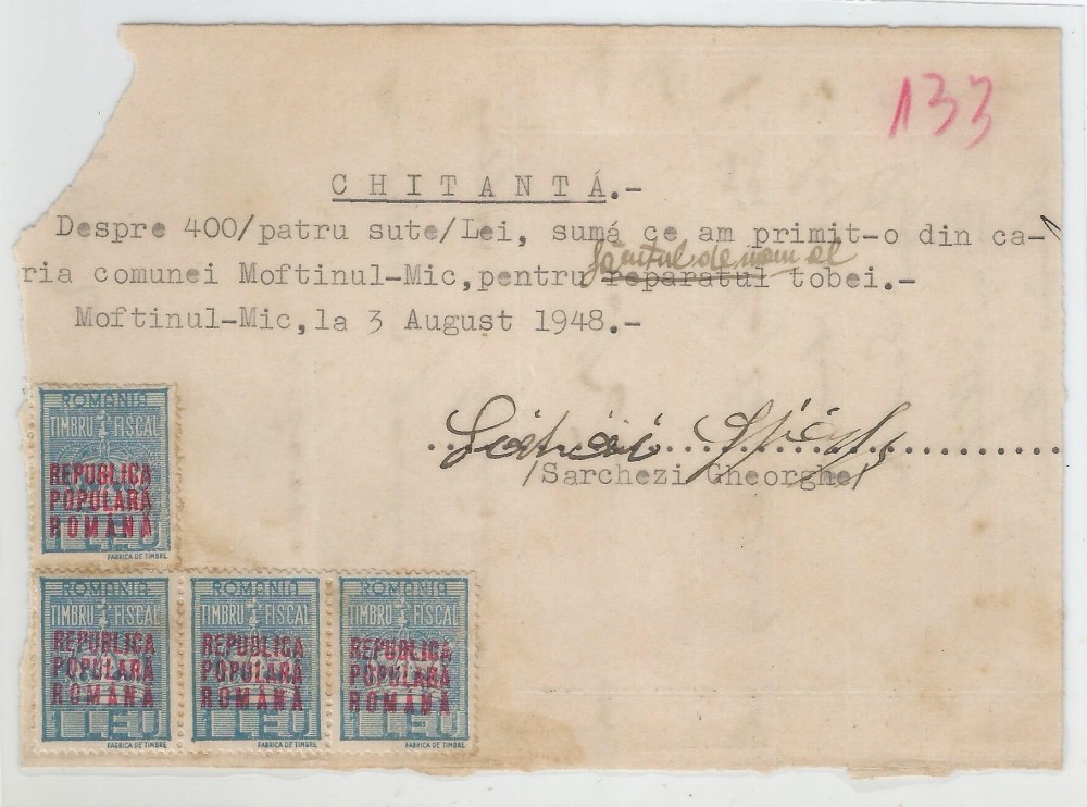 Romania, Chitanta, Moftinul-Mic, 1948