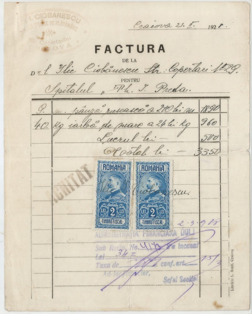 Romania, I. Ciobanescu, Atelier special de plapamarie, Craiova, 1928