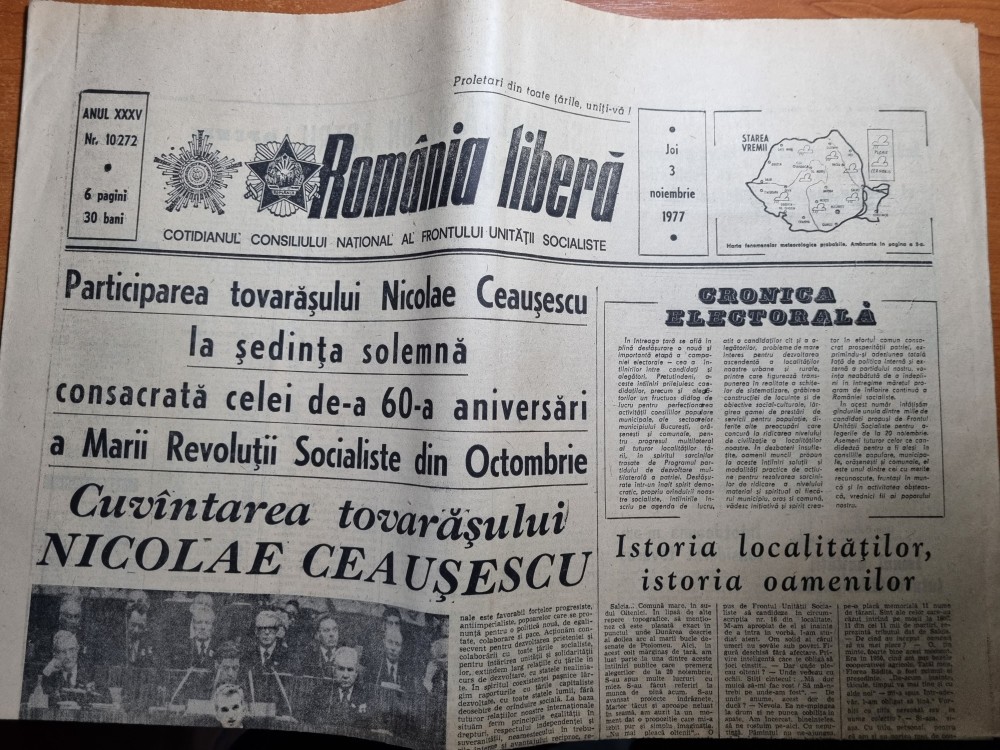 romania libera 3 noiembrie 1977-cuvantarea lui ceausescu in uniunea sovietica