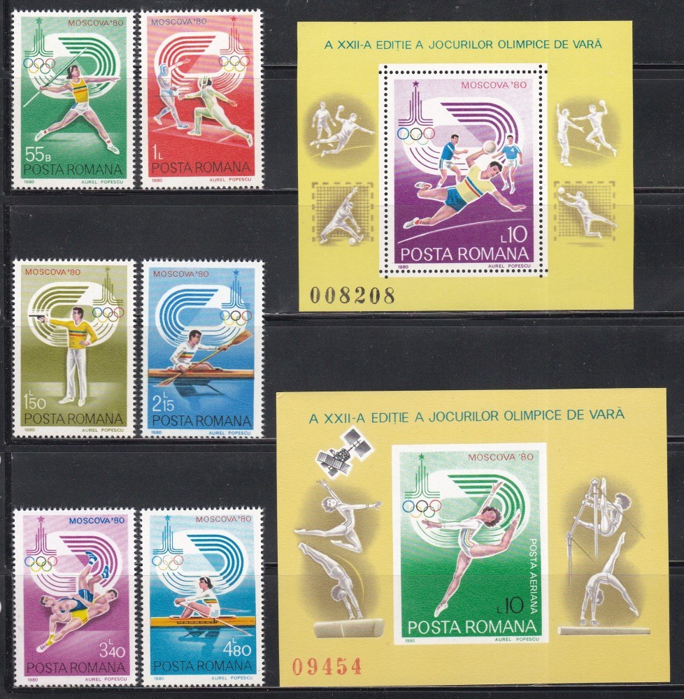 Romania LP 1011,1012,1013 - Jocurile Olimpice - Moscova, Serie + Colita DT + Colita NDT, MNH