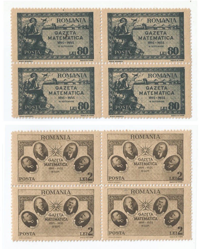 |Romania, LP 180/1945, Gazeta Matematica, blocuri de 4, MNH