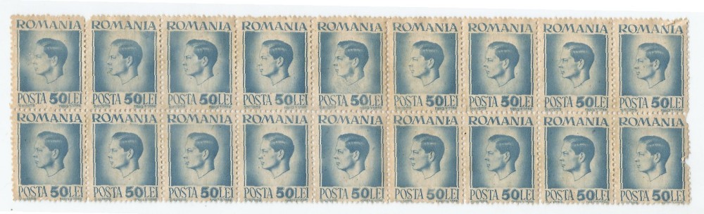 |Romania, LP 188/1945, Uzuale - Mihai I, hartie gri, 50 lei, bloc, eroare, MNH