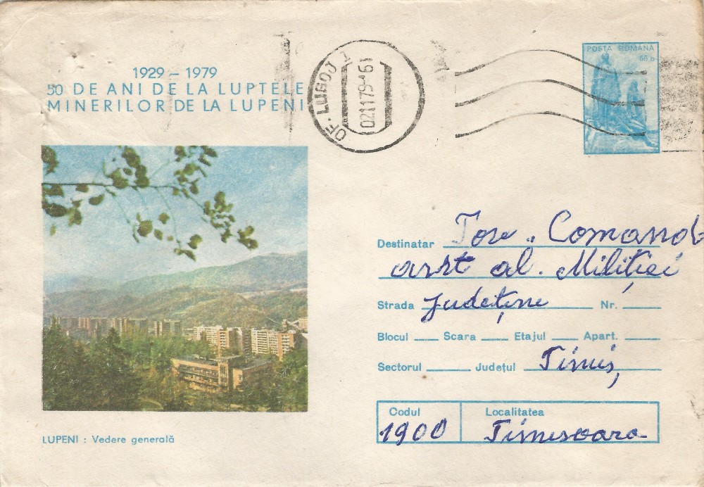 Romania, Lupeni, Vedere generala, plic 3 circulat intern, 1979