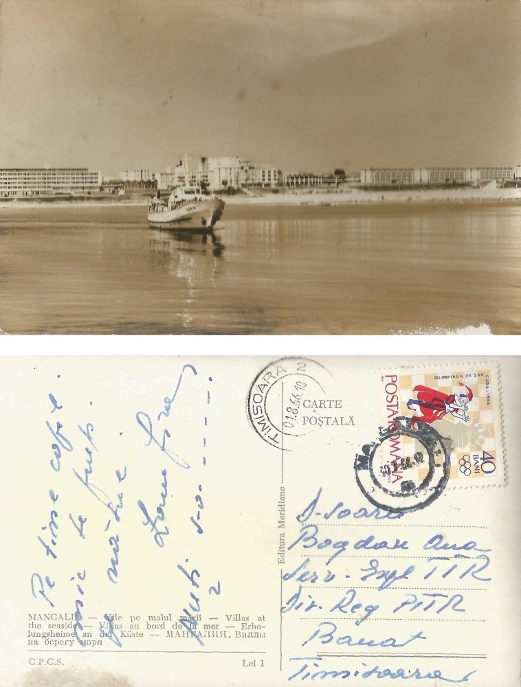 carte postala circulata intern pe ruta Mangalia - Timisoara, 1966