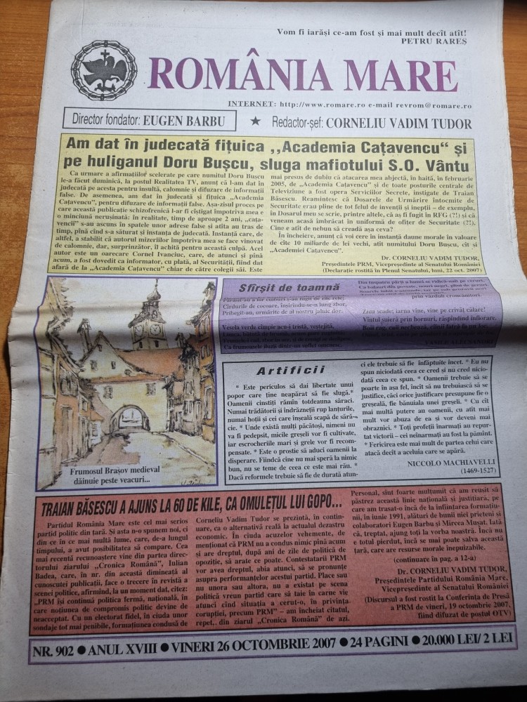 romania mare 26 octombrie 2007-corneliu vadim tudor