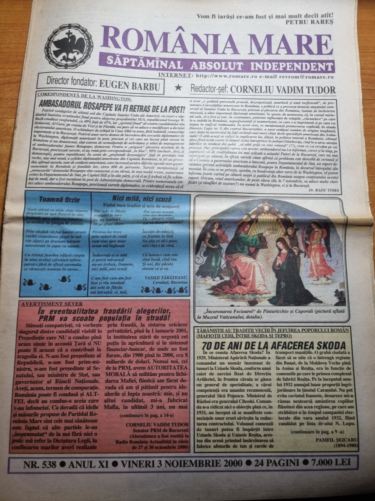 romania mare 3 noiembrie 2000-corneliu vadim tudor