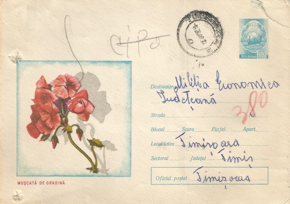 Romania, Muscata de gradina, plic circulat intern, 1969