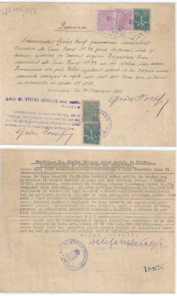 documentul infoliat este francat cu 3 timbre fiscale generale si 2