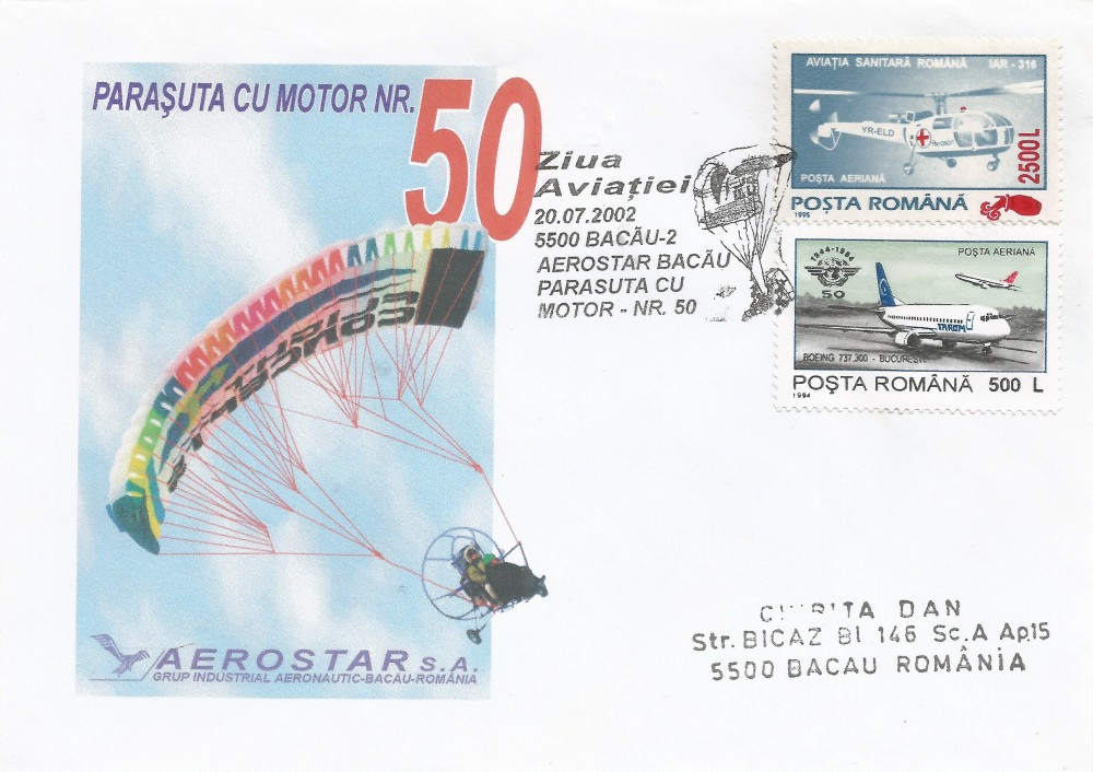 Parasuta cu motor nr. 50, Ziua Aviatiei, Bacau, 2002; timbrul cu