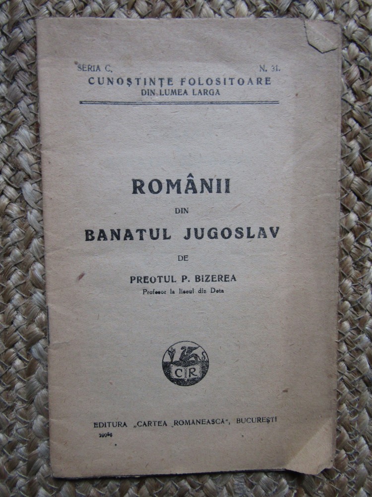ROMANII DIN BANATUL JUGOSLAV de PREOTUL P. BIZEREA , EDITIE INTERBELICA