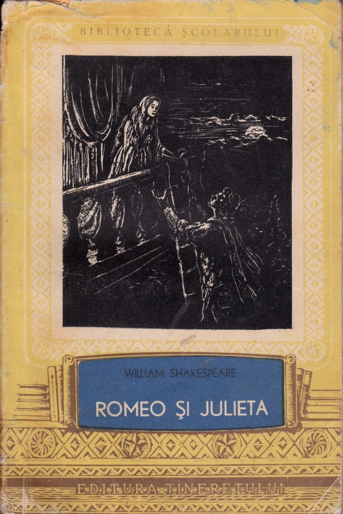 Romeo si Julieta, de William Shakespeare, editura Tineretului, Bucuresti, 1956, 180 pagini. Pentru Bucuresti fac predare personala. Pentru alte localitati 11 ron taxe postale cu ramburs sau 5 ron colet simplu cu plata prin virament bancar. Pentru produse comandate in valoare de 50 ron trimit gratis colet simplu sau 5 ron cu ramburs, iar la 100 ron comanda expediez gratis cu ramburs.
