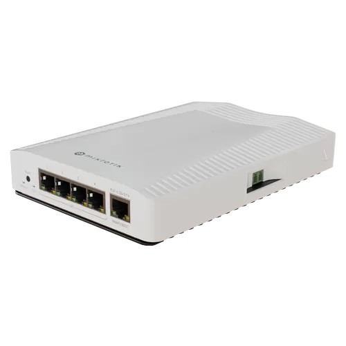 Redundanta alimentarii este o caracteristica cheie la CRS304. Ofera patru optiuni diferite de alimentare: doua mufe DC, un terminal cu 2 pini si PoE-IN. Comutatorul selecteaza automat sursa de alimentare cu cea mai mare tensiune, asigurand functionarea neintrerupta.