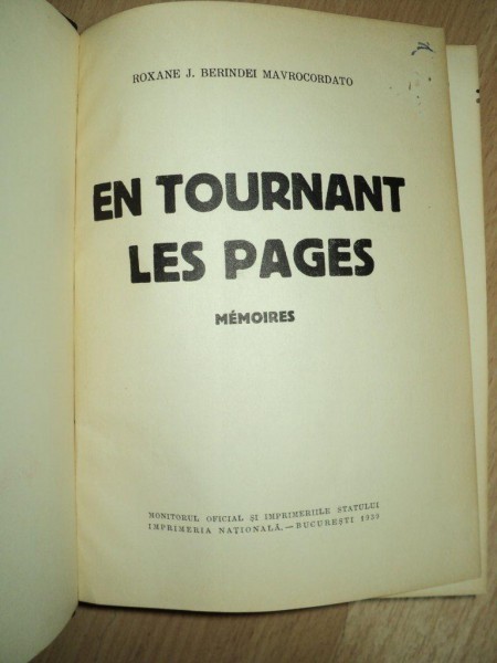 ROXANE J BERINDEI MAVROCORDATO , EN TOURNANT LES PAGES , BUCURESTI 1939