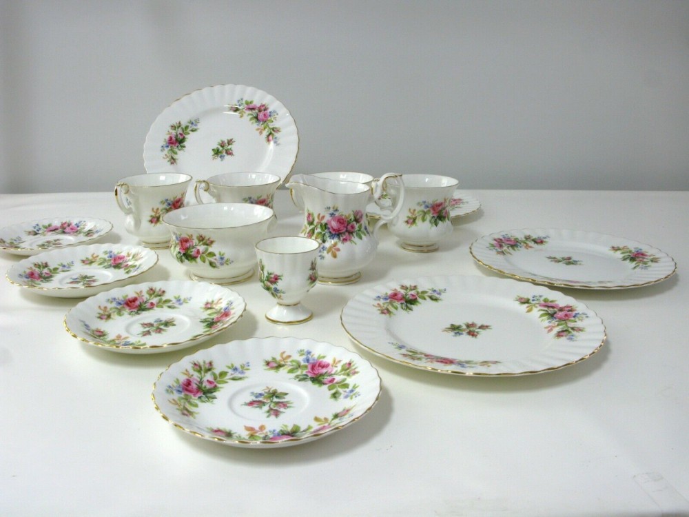 Serviciu parțial din porțelan ROYAL ALBERT Moss Rose Fine Bone