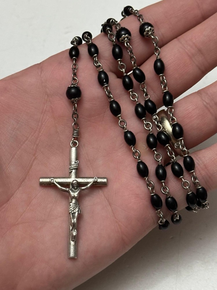 ROZARIU ARGINT 925 + Onix - Cruce - Barbati - CREED Sterling - Vintage !
