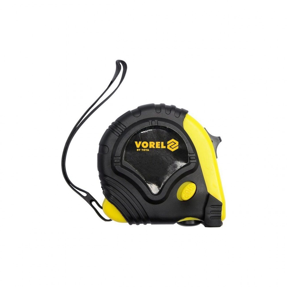 O bandă de oțel de 10 m lungime și 25 mm lățime cu cârlig mobil. Carcasa este realizată din plastic și este întărită cu un capac de cauciuc. Are trei butoane pentru a bloca banda. Clip atașat pentru atașare.