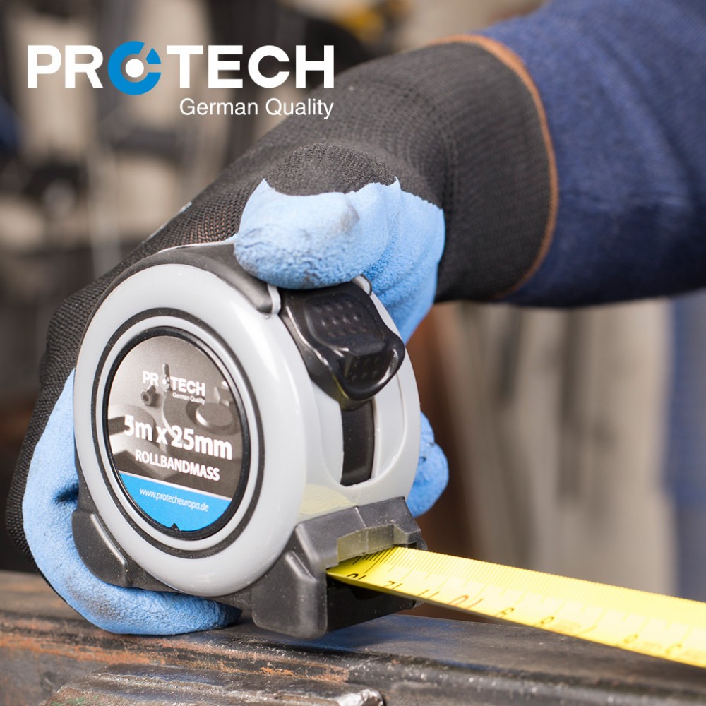 Carcasa din cauciuc ranforsat. Bandă de măsurare acoperită cu nailon. Capac din nailon – reduce uzura. Învelișul din nailon rezistent la rugină acoperă întreaga suprafață a lamei, asigurând lizibilitatea și durabilitatea pe termen lung. Contorul poate fi tras pe toată lungimea sa. Material: plastic ABS