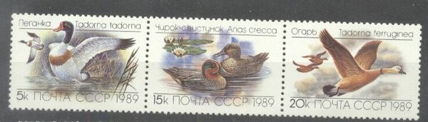 Russia USSR 1989 Birds, Ducks, strip, MNH M.280