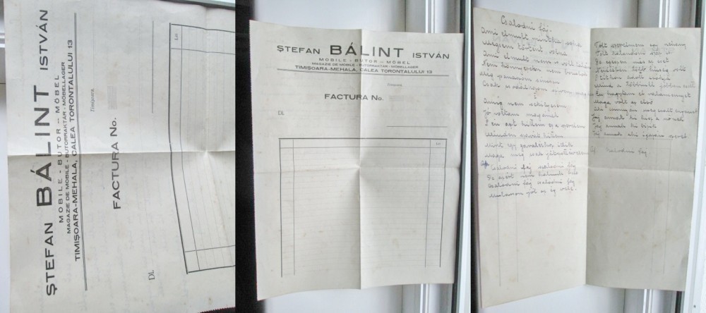 S. Balint I. Mehala Timisoara Factura veche fabricant de mobila.
