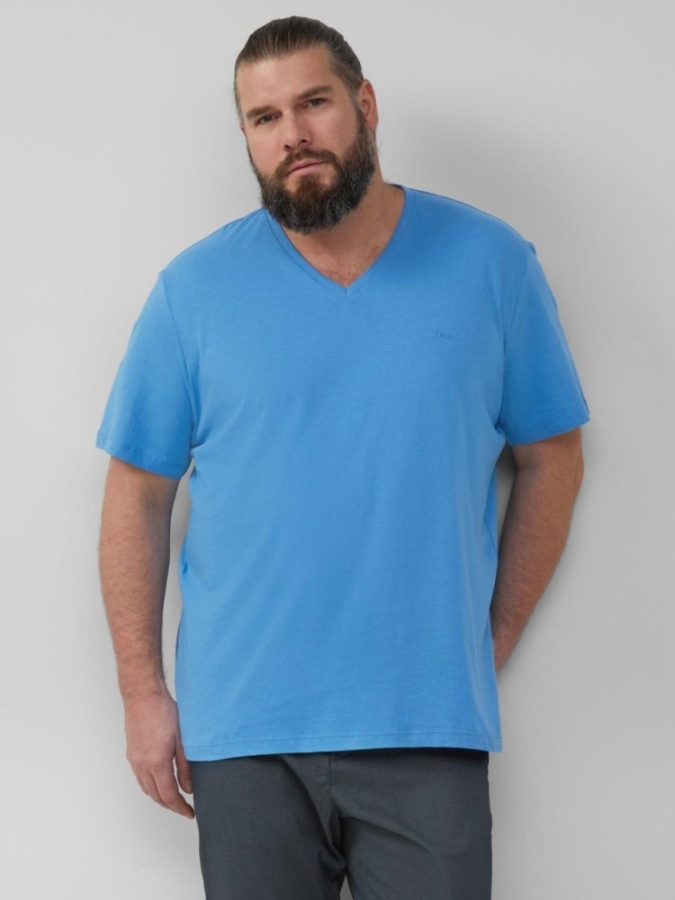 s.Oliver Big Sizes Tricou barbati big sizes cu decolteu in V, croiala Regular Fit, Albastru, 4XL