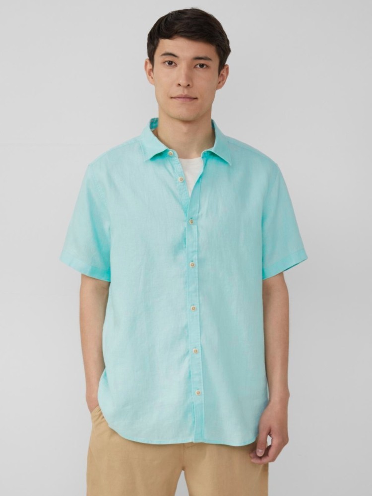 s.Oliver Camasa barbati cu maneca scurta, din in cu croiala Regular fit, Albastru deschis, M