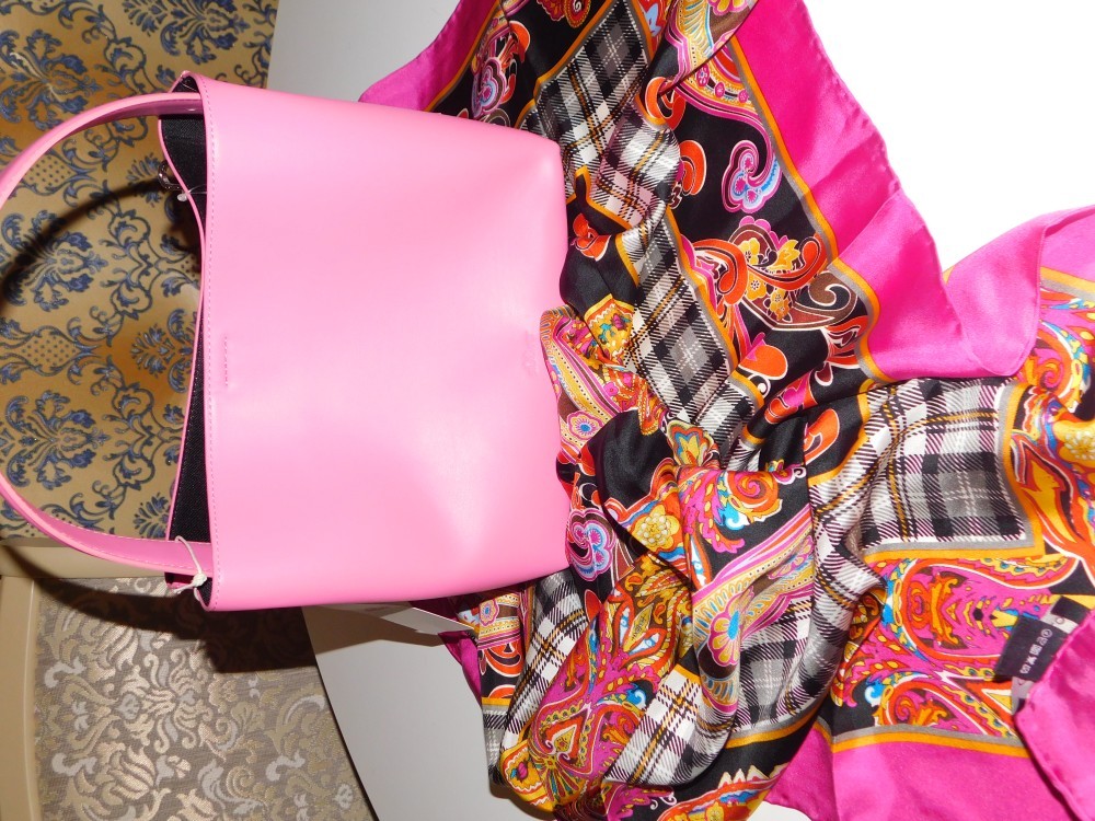 Poseta noua brand S. Oliver , pret eticheta 89.90 euro, 3 compartimente , unuk central inchis cu fermoar, bareta detasabila , cadpu esarfa noua Codello, matase naturala plina , tiv manual , 90 x90 cm ,