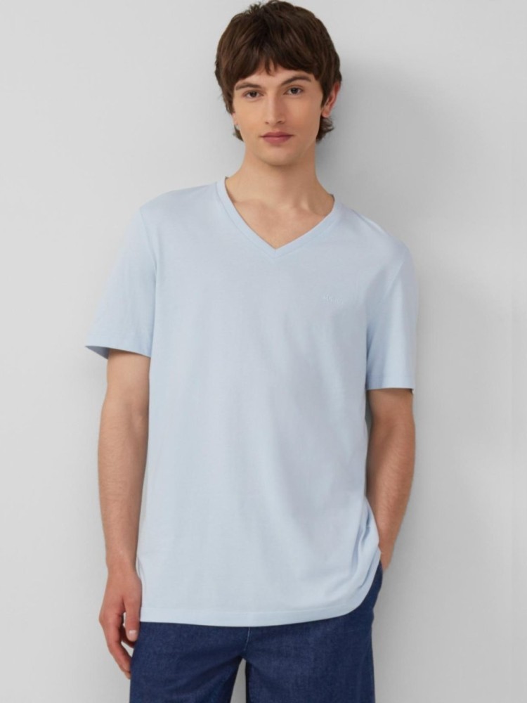 s.Oliver Tricou barbati cu decolteu in V, Regular fit, din bumbac, Albastru deschis, L