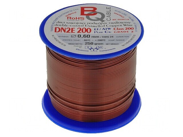 Sârmă bobină dublu emailată 0,6mm 0,25kg de la BQ CABLE este soluția ideală pentru aplicațiile care necesită o izolație sigură și o rezistență termică ridicată. Fabricată din materiale de calitate superioară, această sârmă este proiectată pentru a funcționa în condiții extreme, la temperaturi cuprinse între -65°C și 200°C.
