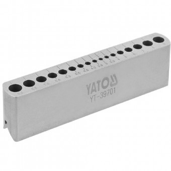 - 17 găuri pentru burghie cu diametrele: 3, 3,2, 3,5, 4, 4,2, 4,5, 5, 5,5, 6, 6,5, 6,8, 7, 7,5, 8, 8,5, 9, 9,5 mm