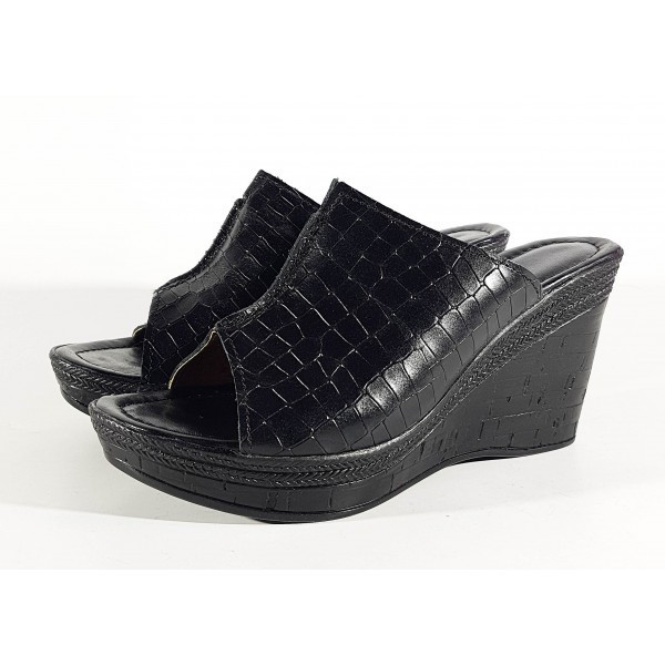Saboti platforma foarte comozi, din piele naturala - culoarea maro cu imprimeu.