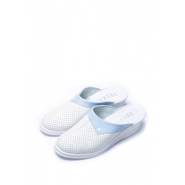 Saboți din piele artificială care îndeplinesc condițiile de bază de protecție a muncii pentru instituțiile medicale, companiile de curățenie, lucrătorii din industria alimentară și alte întreprinderi. Față din imitație de piele cu acoperire PU, talpă turnată din PVC ușor cu strat anti-derapanteÎncălțămintea medicală Tellus combină funcționalitatea ridicată echilibrată cu estetica și confortul. Produsele sunt realizate din materiale respirabile, cu orificii suplimentare de aerisire care sustin schimbul constant de aer - favorabil sanatatii pielii picioarelor, iar talpa este protejata de alunecare. Drept urmare, sabotii dobândesc toți parametrii necesari de calitate, funcționalitate și durabilitate.Dimensiune branț 36-23,5 cm, 37-24 cm, 38-24,5 cm, 39-25,5 cm, 40-26 cm, 41-26,5 cmÎnălțime toc : 5 cm