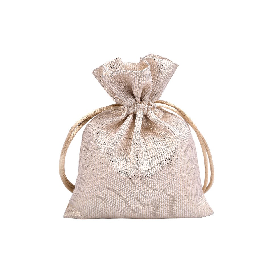Saculet satinat cu lurex pentru cadouri Crisalida, 10 x 13 cm, Bej auriu