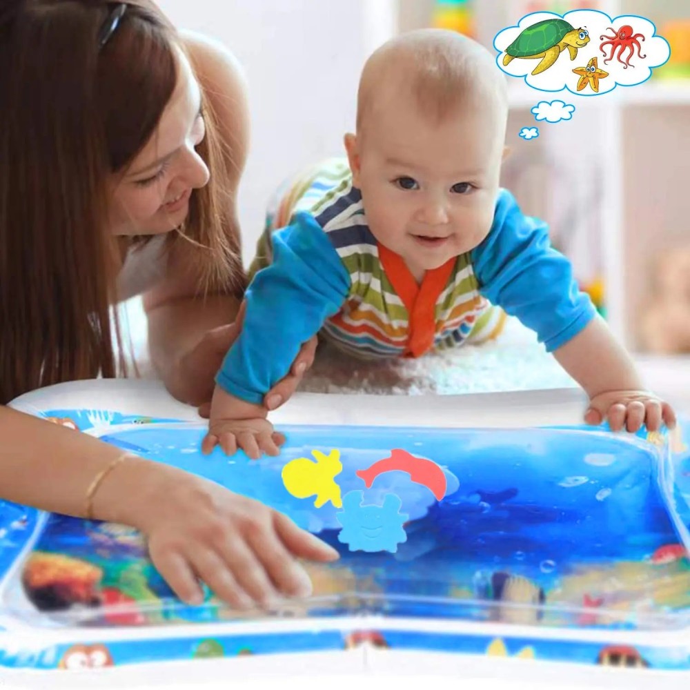 Marginea saltelei trebuie umflata cu aer si centrul umplut cu apa. Cand este pliata, ocupa putin spatiu . In interior exista animale acvatice colorate care se vor misca sub miscarile bebelusului. Estefoarte usor de curatat, stergeti-o doar cu o carpa umeda. Lumea acvatica ii va capta atentia celui mic.