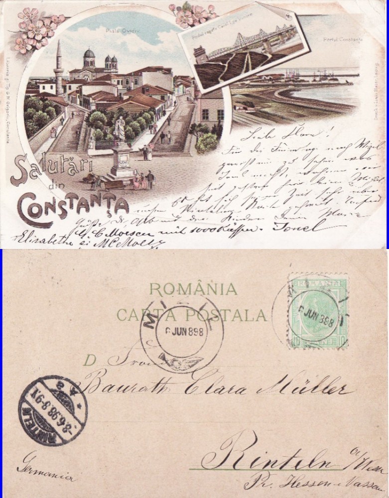 Salutari din Constanta-Piata Ovidiu. Portul- litografie 1898