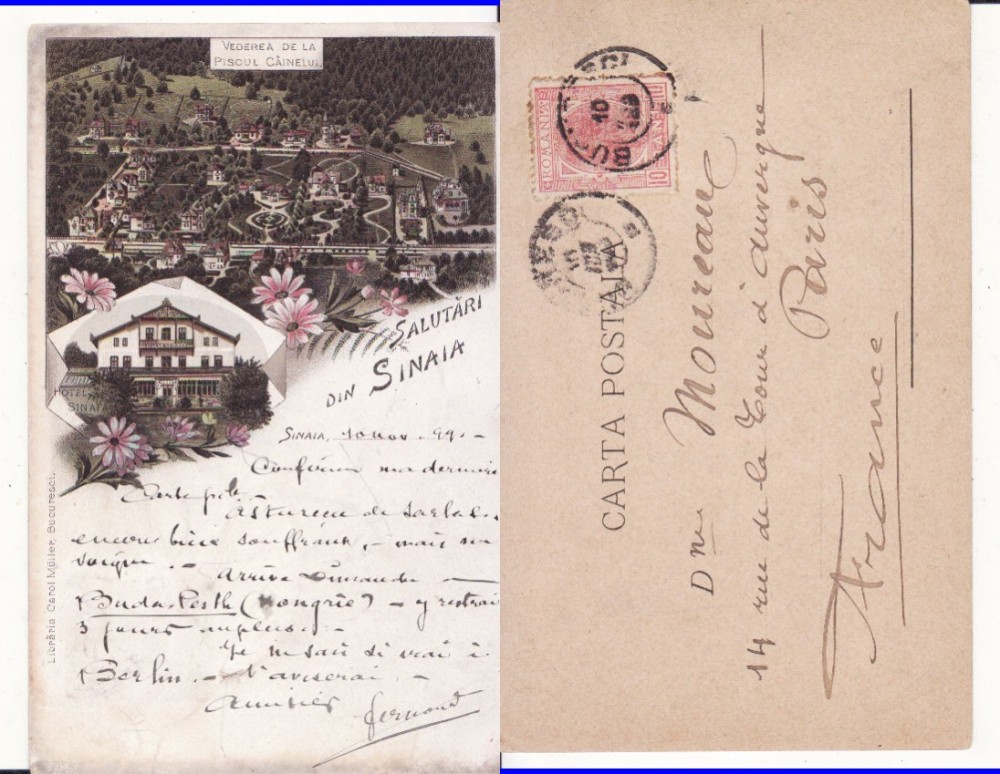 Salutari din Sinaia - Litografie 1899 -edit. Bucuresti