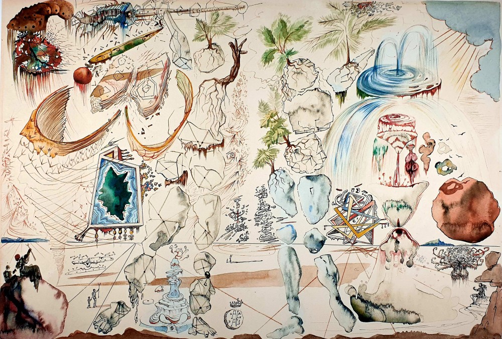 Salvador Dalí, Viziunea erei atomice, litografie semnată în creion de mână