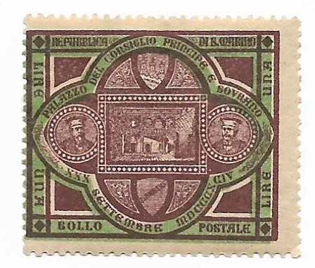San Marino (1) - Deschiderea Palatului Guvernului și instalarea Căpitanilor-Regenti, 1894 - valoare neobliterata