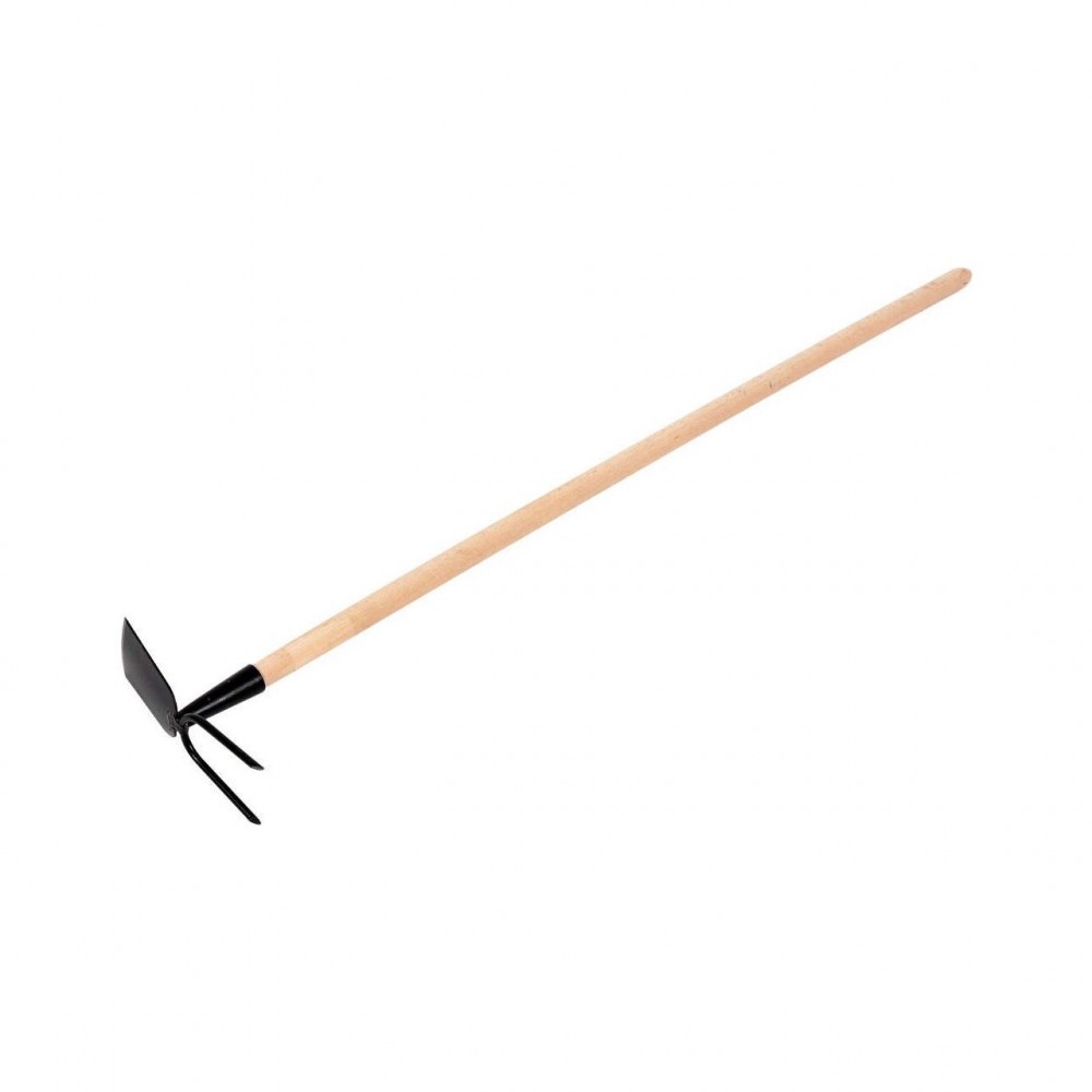 Scarificatorul cu sapă este utilizat la plivire, înțepenire, aerare a solului și alte lucrări de grădinărit. O lamă dreptunghiulară din oțel cu doi dinți ascuțiți, conectată permanent la un manșon pentru fixarea unui mâner tipic din lemn. Suprafața este protejată cu un strat de lac negru.