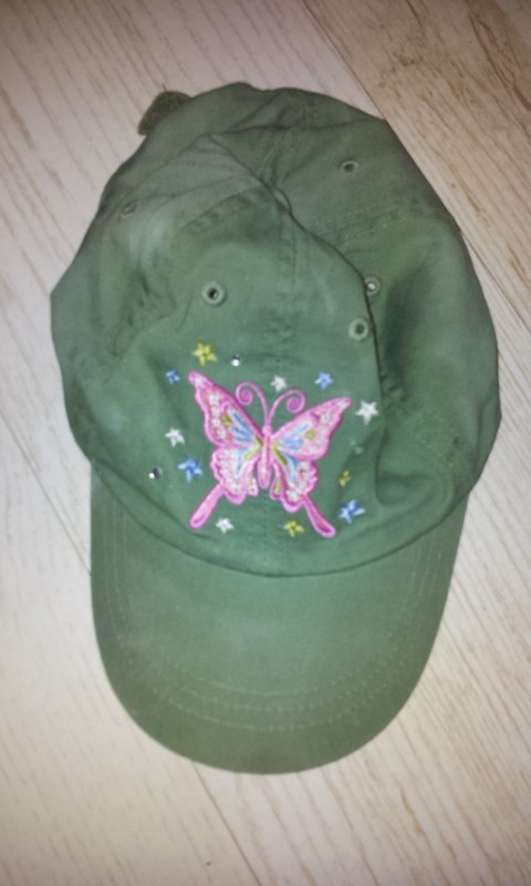 Sapca fete de la Place, 54 cm, 100% bumbac, ca noua, cu un fluturas brodat pe fata.