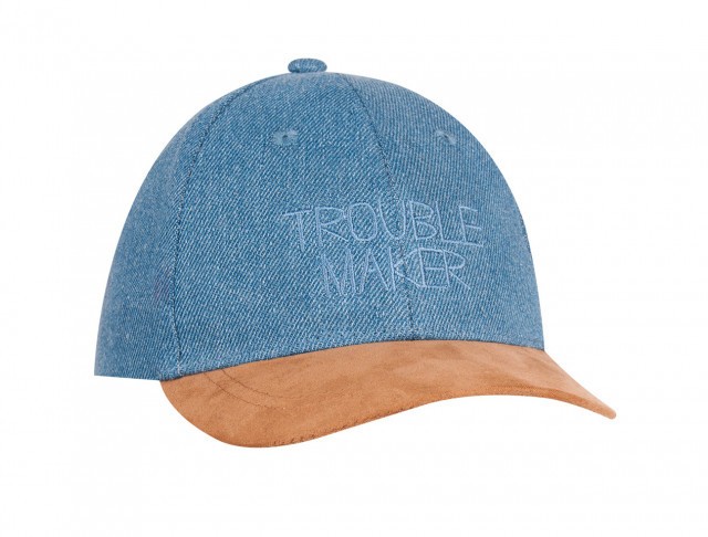 Sapca denim pentru baietei, model Trouble Maker cu cozoroc maro.