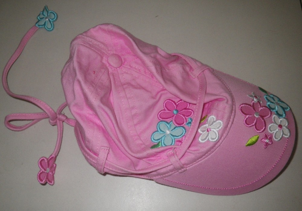 Sapca roz de fete bebelus, noua, din bumbac, cu snur cu floricele la spate