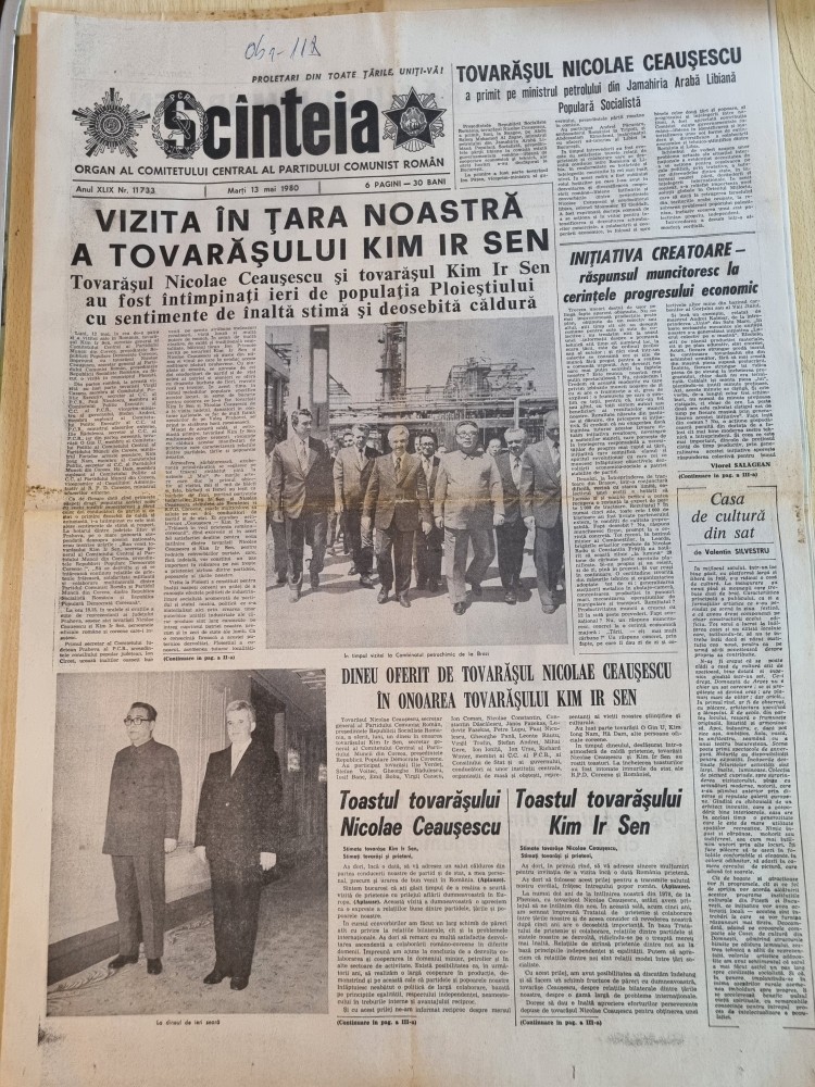 scanteia 13 mai 1980-vizita lui kim ir sen in romania,moartea lui vida gheza