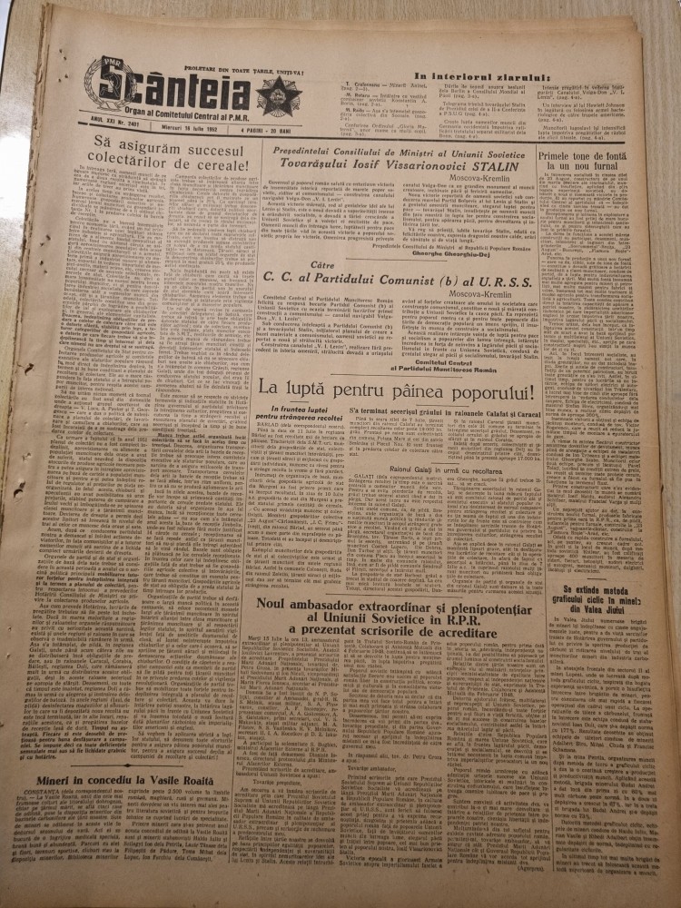 scanteia 16 iulie 1952-art. mina anina,regiunea mures,valul lui traian